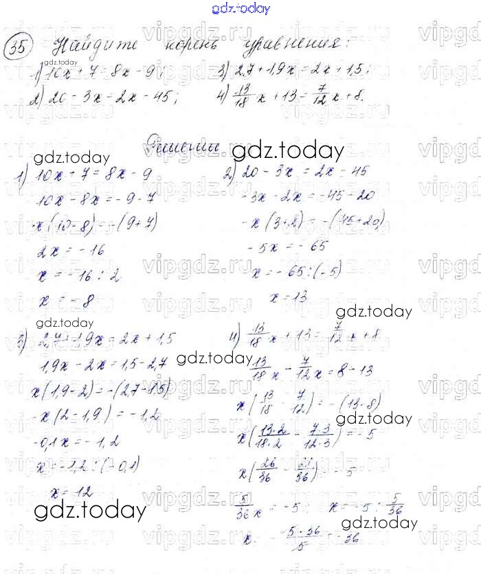 Ответы к Решение к упражнениям 35 Учебнику по Алгебре для 7 класса Мерзляк, Полонский Базовый уровень Вентана-граф Алгоритм успеха 2016
