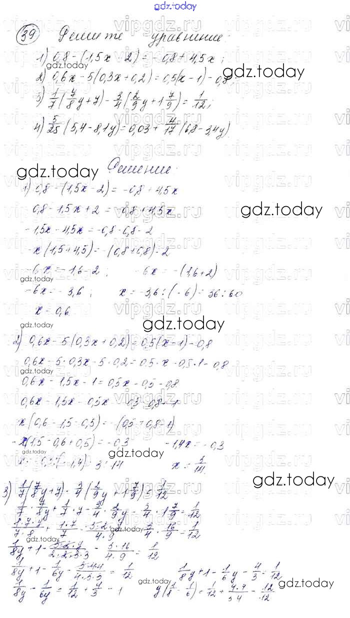 Ответы к Решение к упражнениям 39 Учебнику по Алгебре для 7 класса Мерзляк, Полонский Базовый уровень Вентана-граф Алгоритм успеха 2016