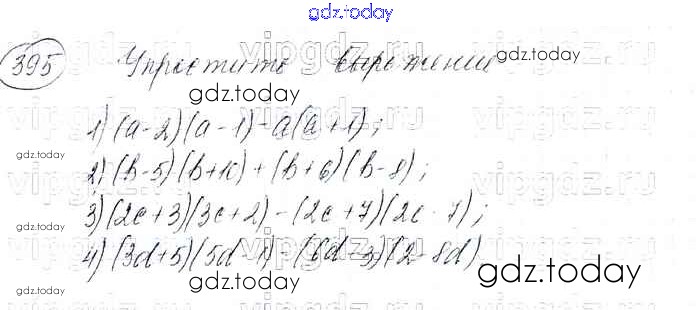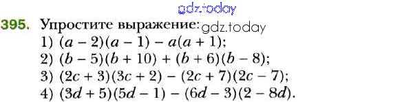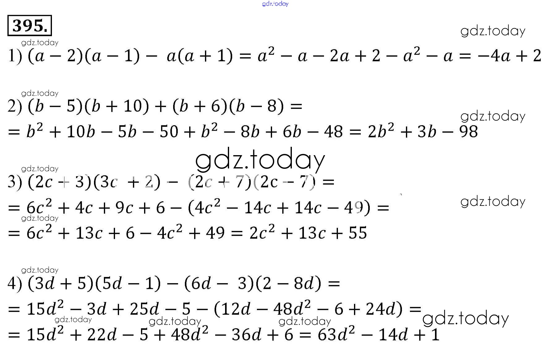 На страницах сайта gdz.today вы найдете учебный и вспомогательный материал, направленный на улучшения знаний школьной программы. ГДЗ - онлайн мир знаний Решение к упражнениям 395 Учебнику по Алгебре для 7 класса Мерзляк, Полонский Базовый уровень Вентана-граф Алгоритм успеха 2016