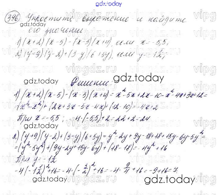 На страницах сайта gdz.today вы найдете учебный и вспомогательный материал, направленный на улучшения знаний школьной программы. ГДЗ - онлайн мир знаний Решение к упражнениям 396 Учебнику по Алгебре для 7 класса Мерзляк, Полонский Базовый уровень Вентана-граф Алгоритм успеха 2016