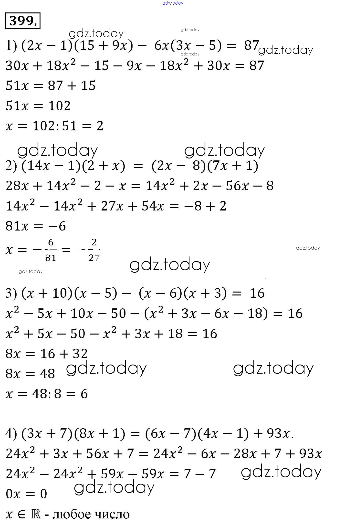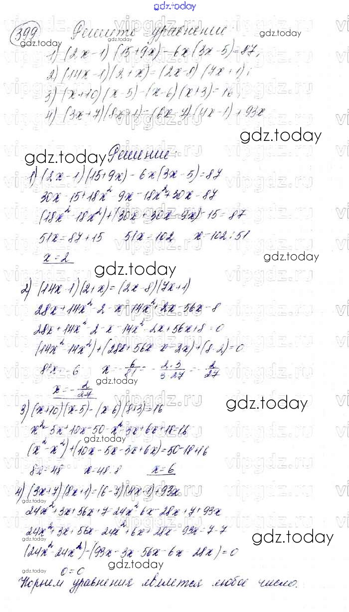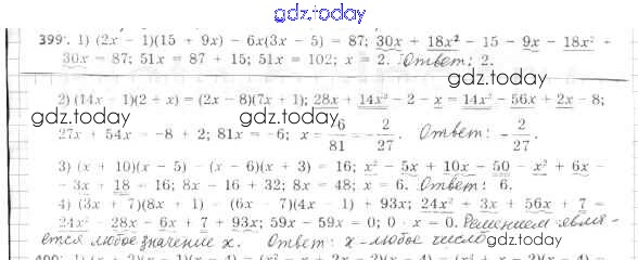 На страницах сайта gdz.today вы найдете учебный и вспомогательный материал, направленный на улучшения знаний школьной программы. ГДЗ - онлайн мир знаний Решение к упражнениям 399 Учебнику по Алгебре для 7 класса Мерзляк, Полонский Базовый уровень Вентана-граф Алгоритм успеха 2016
