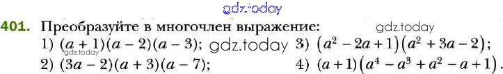 На страницах сайта gdz.today вы найдете учебный и вспомогательный материал, направленный на улучшения знаний школьной программы. ГДЗ - онлайн мир знаний Решение к упражнениям 401 Учебнику по Алгебре для 7 класса Мерзляк, Полонский Базовый уровень Вентана-граф Алгоритм успеха 2016