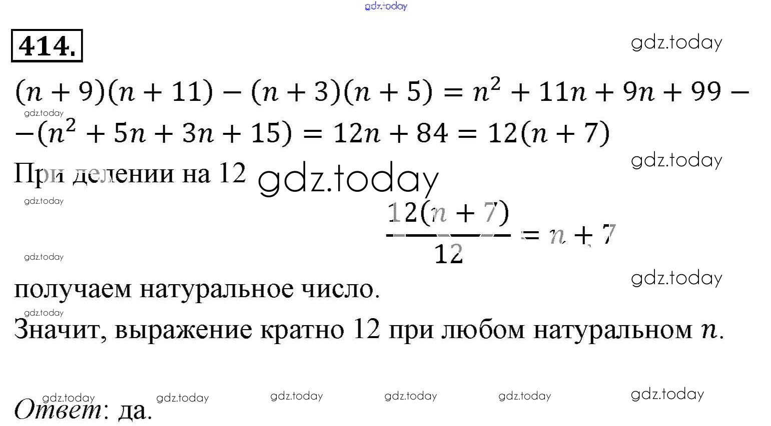 На страницах сайта gdz.today вы найдете учебный и вспомогательный материал, направленный на улучшения знаний школьной программы. ГДЗ - онлайн мир знаний Решение к упражнениям 414 Учебнику по Алгебре для 7 класса Мерзляк, Полонский Базовый уровень Вентана-граф Алгоритм успеха 2016
