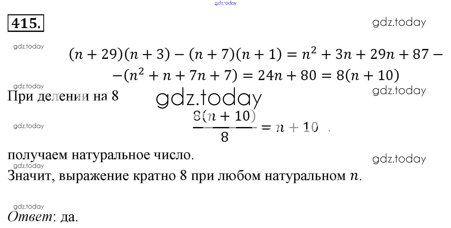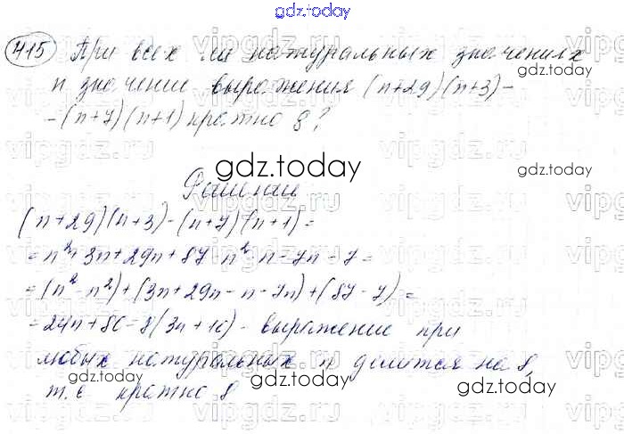 На страницах сайта gdz.today вы найдете учебный и вспомогательный материал, направленный на улучшения знаний школьной программы. ГДЗ - онлайн мир знаний Решение к упражнениям 415 Учебнику по Алгебре для 7 класса Мерзляк, Полонский Базовый уровень Вентана-граф Алгоритм успеха 2016