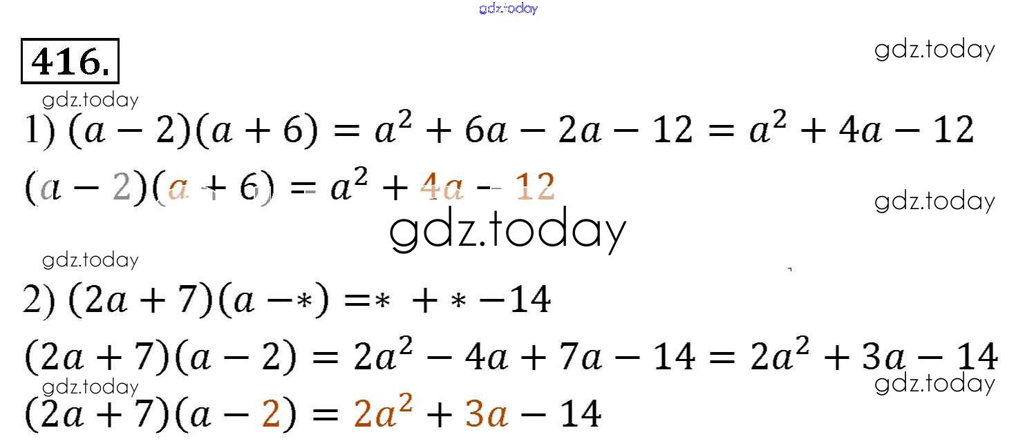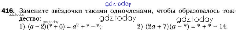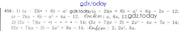 На страницах сайта gdz.today вы найдете учебный и вспомогательный материал, направленный на улучшения знаний школьной программы. ГДЗ - онлайн мир знаний Решение к упражнениям 416 Учебнику по Алгебре для 7 класса Мерзляк, Полонский Базовый уровень Вентана-граф Алгоритм успеха 2016
