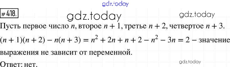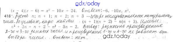 На страницах сайта gdz.today вы найдете учебный и вспомогательный материал, направленный на улучшения знаний школьной программы. ГДЗ - онлайн мир знаний Решение к упражнениям 418 Учебнику по Алгебре для 7 класса Мерзляк, Полонский Базовый уровень Вентана-граф Алгоритм успеха 2016