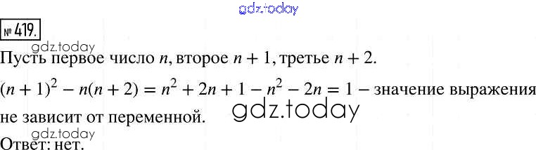 На страницах сайта gdz.today вы найдете учебный и вспомогательный материал, направленный на улучшения знаний школьной программы. ГДЗ - онлайн мир знаний Решение к упражнениям 419 Учебнику по Алгебре для 7 класса Мерзляк, Полонский Базовый уровень Вентана-граф Алгоритм успеха 2016