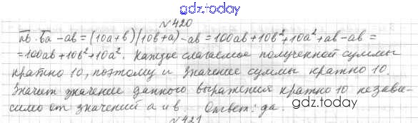 На страницах сайта gdz.today вы найдете учебный и вспомогательный материал, направленный на улучшения знаний школьной программы. ГДЗ - онлайн мир знаний Решение к упражнениям 420 Учебнику по Алгебре для 7 класса Мерзляк, Полонский Базовый уровень Вентана-граф Алгоритм успеха 2016