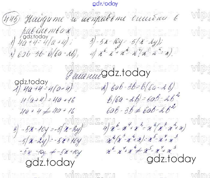 На страницах сайта gdz.today вы найдете учебный и вспомогательный материал, направленный на улучшения знаний школьной программы. ГДЗ - онлайн мир знаний Решение к упражнениям 445 Учебнику по Алгебре для 7 класса Мерзляк, Полонский Базовый уровень Вентана-граф Алгоритм успеха 2016