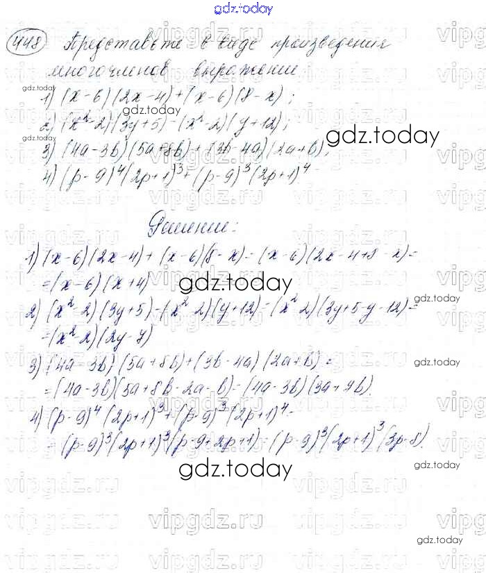 На страницах сайта gdz.today вы найдете учебный и вспомогательный материал, направленный на улучшения знаний школьной программы. ГДЗ - онлайн мир знаний Решение к упражнениям 448 Учебнику по Алгебре для 7 класса Мерзляк, Полонский Базовый уровень Вентана-граф Алгоритм успеха 2016