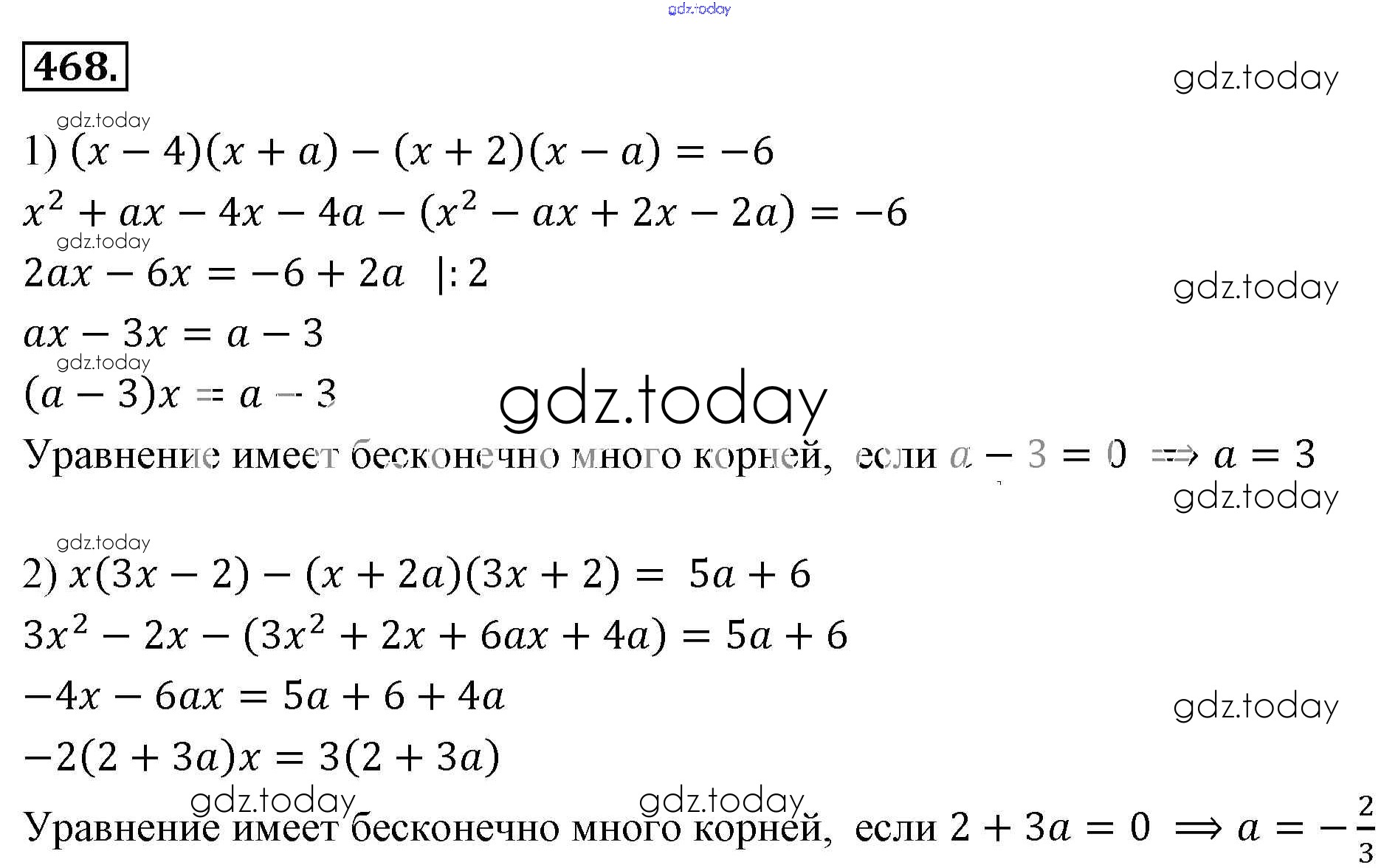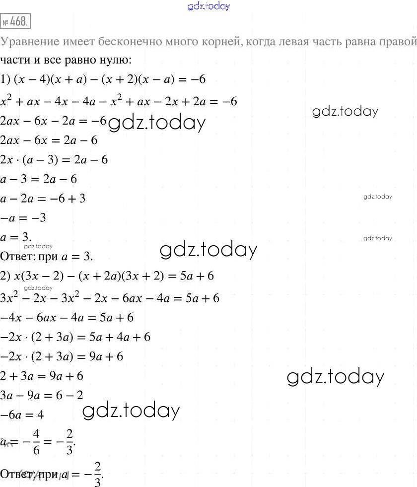 На страницах сайта gdz.today вы найдете учебный и вспомогательный материал, направленный на улучшения знаний школьной программы. ГДЗ - онлайн мир знаний Решение к упражнениям 468 Учебнику по Алгебре для 7 класса Мерзляк, Полонский Базовый уровень Вентана-граф Алгоритм успеха 2016
