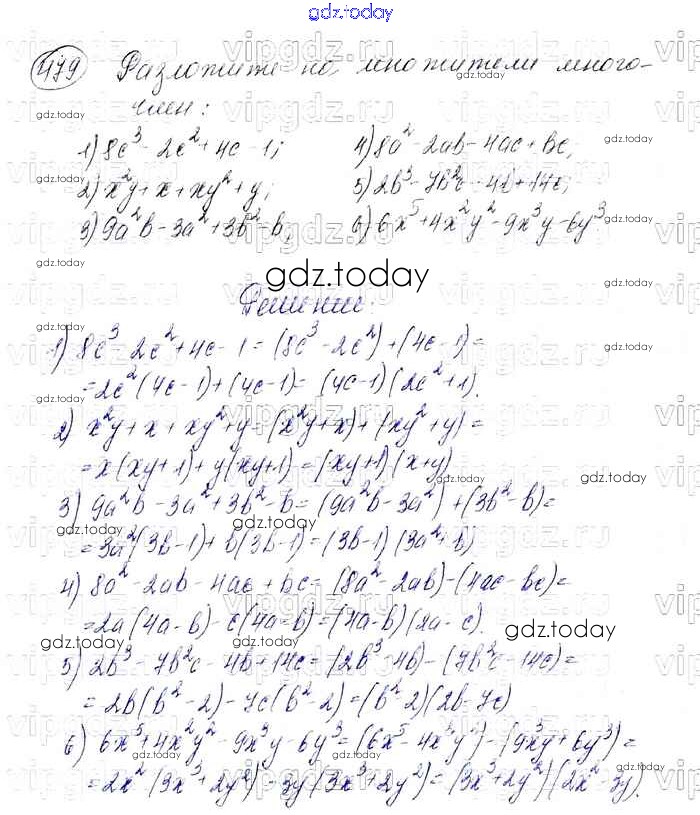 На страницах сайта gdz.today вы найдете учебный и вспомогательный материал, направленный на улучшения знаний школьной программы. ГДЗ - онлайн мир знаний Решение к упражнениям 479 Учебнику по Алгебре для 7 класса Мерзляк, Полонский Базовый уровень Вентана-граф Алгоритм успеха 2016