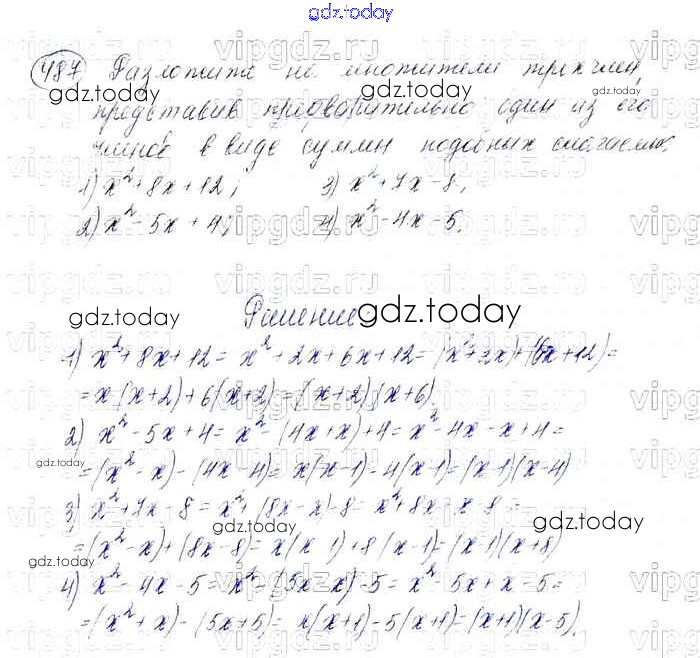 Ответы к Решение к упражнениям 487 Учебнику по Алгебре для 7 класса Мерзляк, Полонский Базовый уровень Вентана-граф Алгоритм успеха 2016