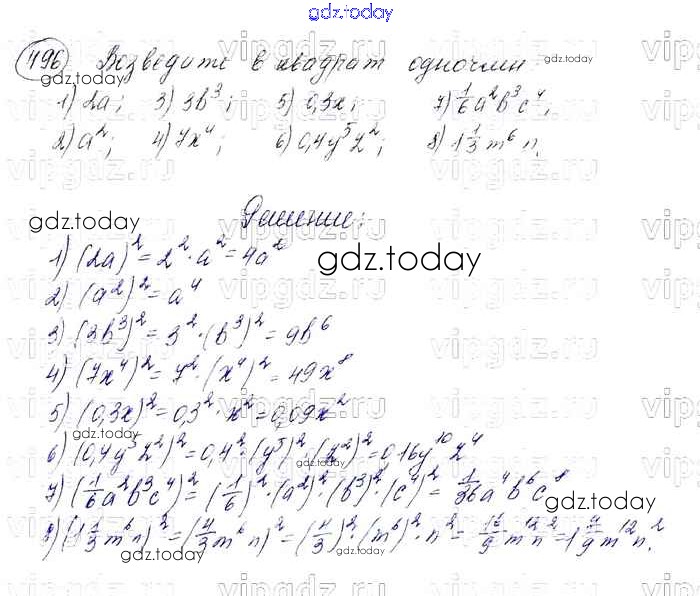 На страницах сайта gdz.today вы найдете учебный и вспомогательный материал, направленный на улучшения знаний школьной программы. ГДЗ - онлайн мир знаний Решение к упражнениям 496 Учебнику по Алгебре для 7 класса Мерзляк, Полонский Базовый уровень Вентана-граф Алгоритм успеха 2016