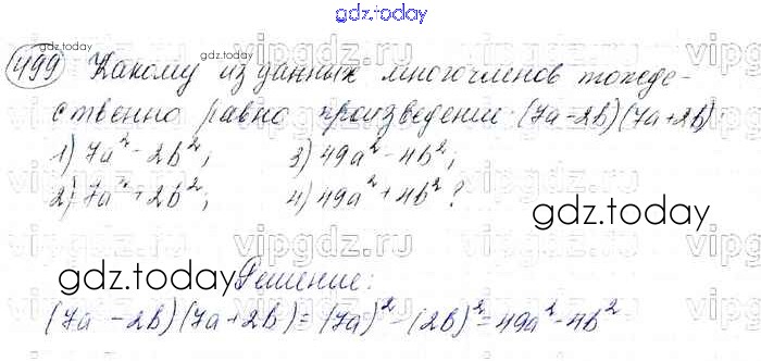 На страницах сайта gdz.today вы найдете учебный и вспомогательный материал, направленный на улучшения знаний школьной программы. ГДЗ - онлайн мир знаний Решение к упражнениям 499 Учебнику по Алгебре для 7 класса Мерзляк, Полонский Базовый уровень Вентана-граф Алгоритм успеха 2016