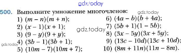 На страницах сайта gdz.today вы найдете учебный и вспомогательный материал, направленный на улучшения знаний школьной программы. ГДЗ - онлайн мир знаний Решение к упражнениям 500 Учебнику по Алгебре для 7 класса Мерзляк, Полонский Базовый уровень Вентана-граф Алгоритм успеха 2016