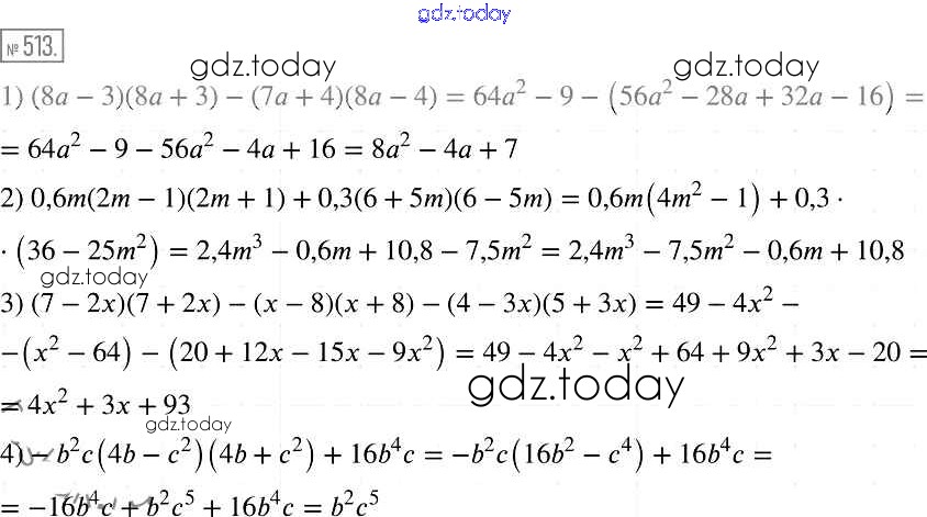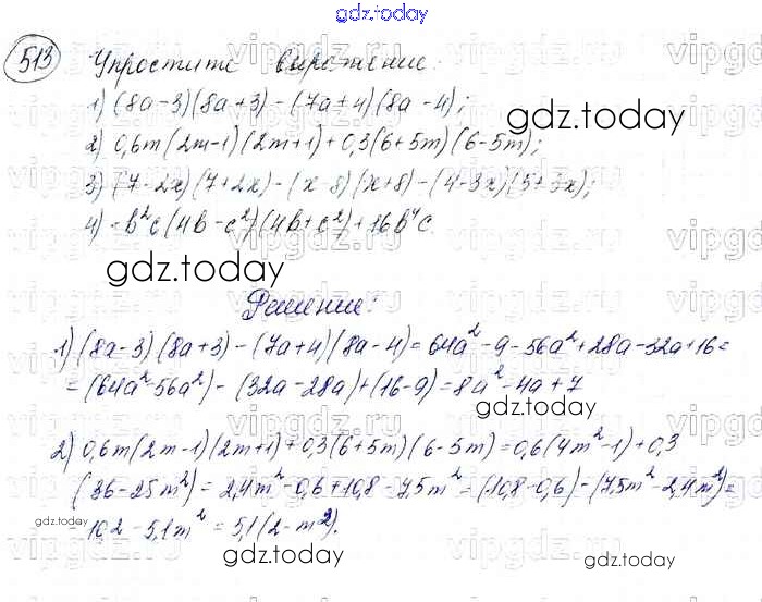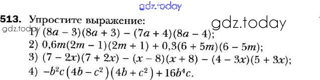 На страницах сайта gdz.today вы найдете учебный и вспомогательный материал, направленный на улучшения знаний школьной программы. ГДЗ - онлайн мир знаний Решение к упражнениям 513 Учебнику по Алгебре для 7 класса Мерзляк, Полонский Базовый уровень Вентана-граф Алгоритм успеха 2016