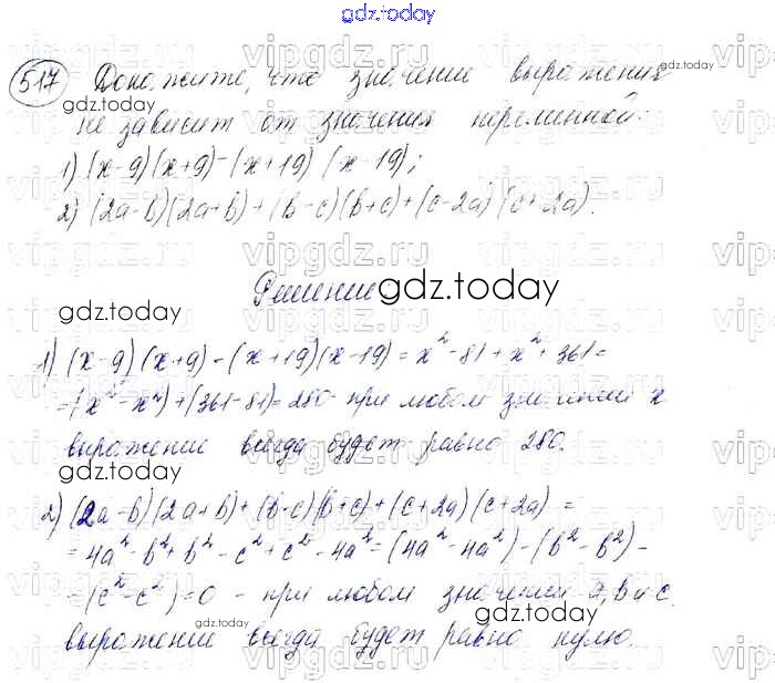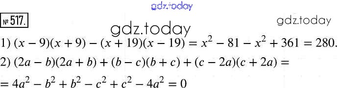 На страницах сайта gdz.today вы найдете учебный и вспомогательный материал, направленный на улучшения знаний школьной программы. ГДЗ - онлайн мир знаний Решение к упражнениям 517 Учебнику по Алгебре для 7 класса Мерзляк, Полонский Базовый уровень Вентана-граф Алгоритм успеха 2016