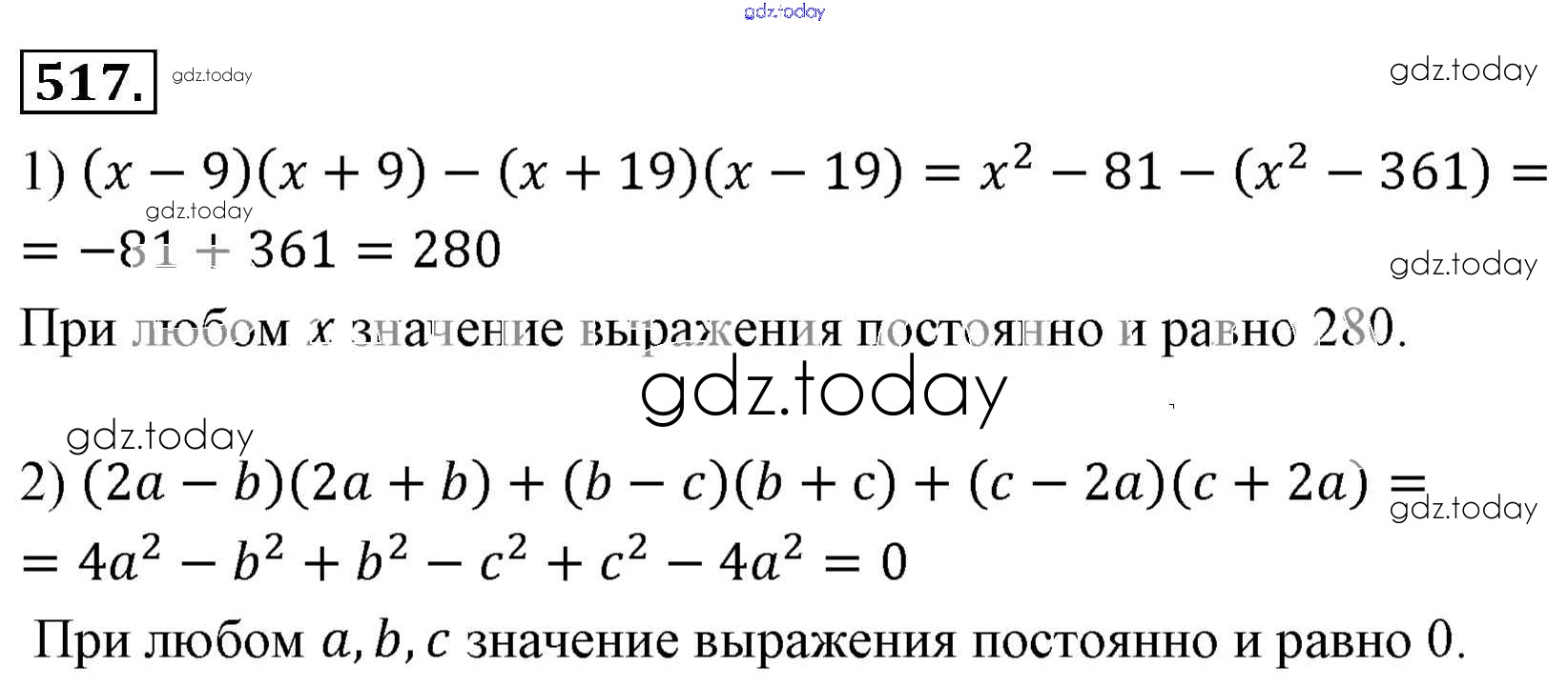 Ответы к Решение к упражнениям 517 Учебнику по Алгебре для 7 класса Мерзляк, Полонский Базовый уровень Вентана-граф Алгоритм успеха 2016