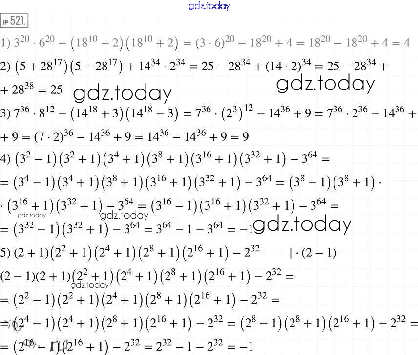 На страницах сайта gdz.today вы найдете учебный и вспомогательный материал, направленный на улучшения знаний школьной программы. ГДЗ - онлайн мир знаний Решение к упражнениям 521 Учебнику по Алгебре для 7 класса Мерзляк, Полонский Базовый уровень Вентана-граф Алгоритм успеха 2016