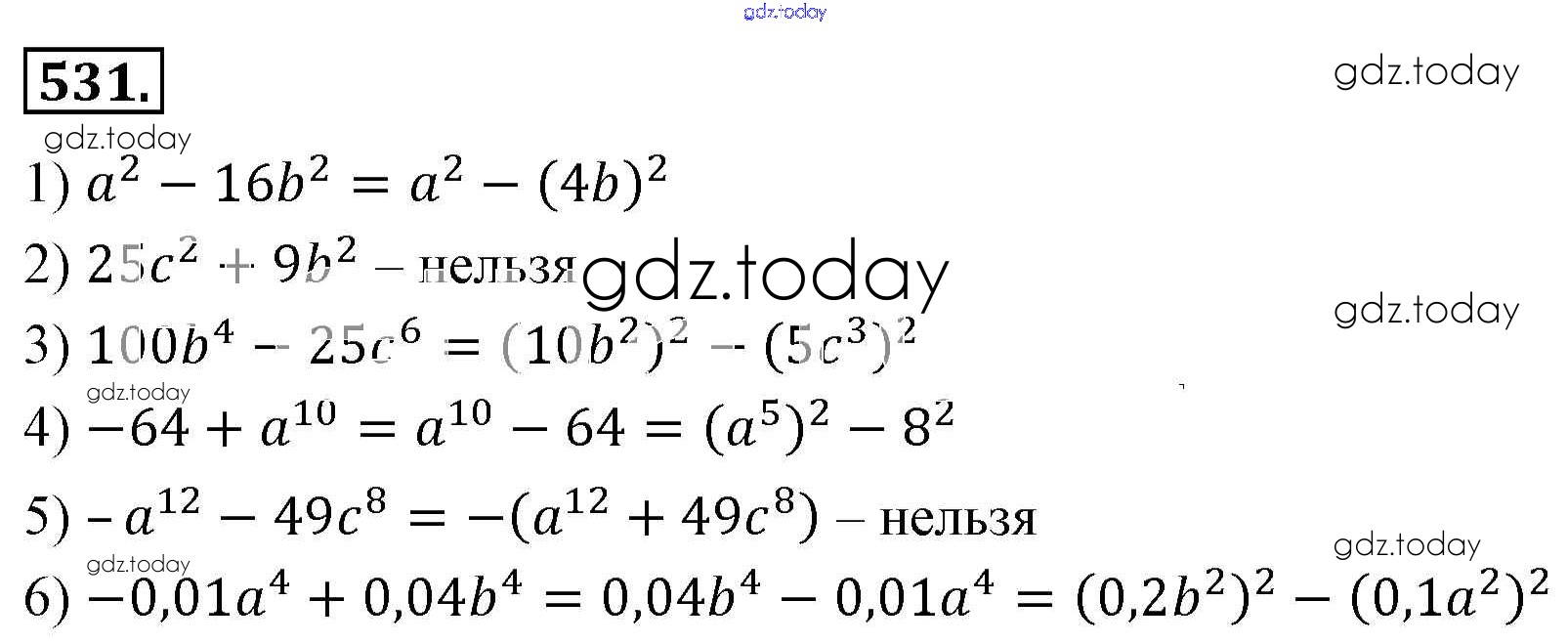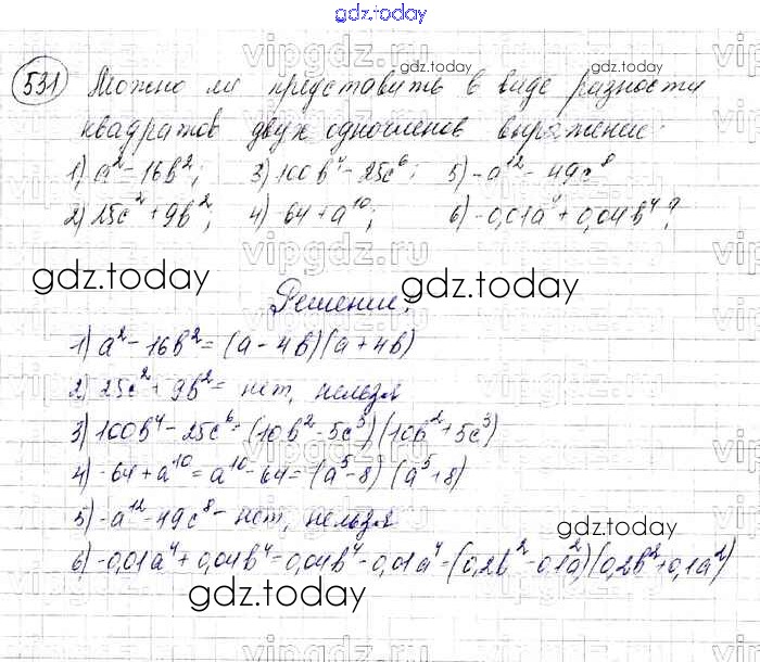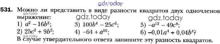 На страницах сайта gdz.today вы найдете учебный и вспомогательный материал, направленный на улучшения знаний школьной программы. ГДЗ - онлайн мир знаний Решение к упражнениям 531 Учебнику по Алгебре для 7 класса Мерзляк, Полонский Базовый уровень Вентана-граф Алгоритм успеха 2016