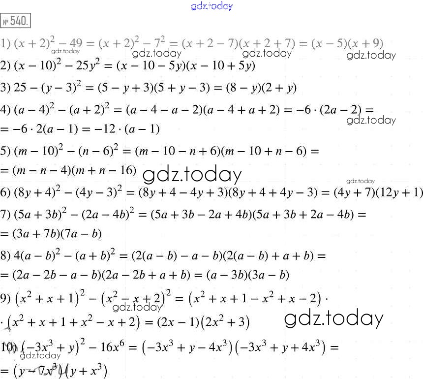 На страницах сайта gdz.today вы найдете учебный и вспомогательный материал, направленный на улучшения знаний школьной программы. ГДЗ - онлайн мир знаний Решение к упражнениям 540 Учебнику по Алгебре для 7 класса Мерзляк, Полонский Базовый уровень Вентана-граф Алгоритм успеха 2016
