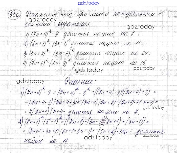 На страницах сайта gdz.today вы найдете учебный и вспомогательный материал, направленный на улучшения знаний школьной программы. ГДЗ - онлайн мир знаний Решение к упражнениям 550 Учебнику по Алгебре для 7 класса Мерзляк, Полонский Базовый уровень Вентана-граф Алгоритм успеха 2016
