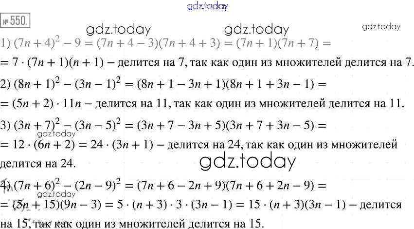 Ответы к Решение к упражнениям 550 Учебнику по Алгебре для 7 класса Мерзляк, Полонский Базовый уровень Вентана-граф Алгоритм успеха 2016