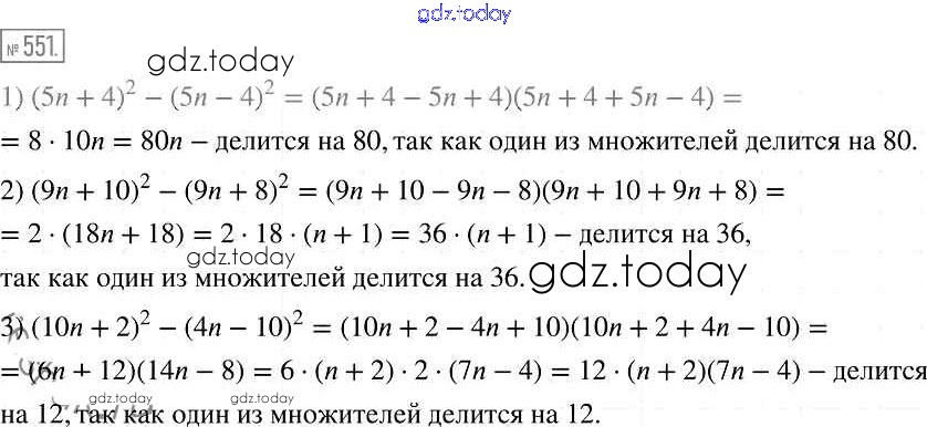 На страницах сайта gdz.today вы найдете учебный и вспомогательный материал, направленный на улучшения знаний школьной программы. ГДЗ - онлайн мир знаний Решение к упражнениям 551 Учебнику по Алгебре для 7 класса Мерзляк, Полонский Базовый уровень Вентана-граф Алгоритм успеха 2016