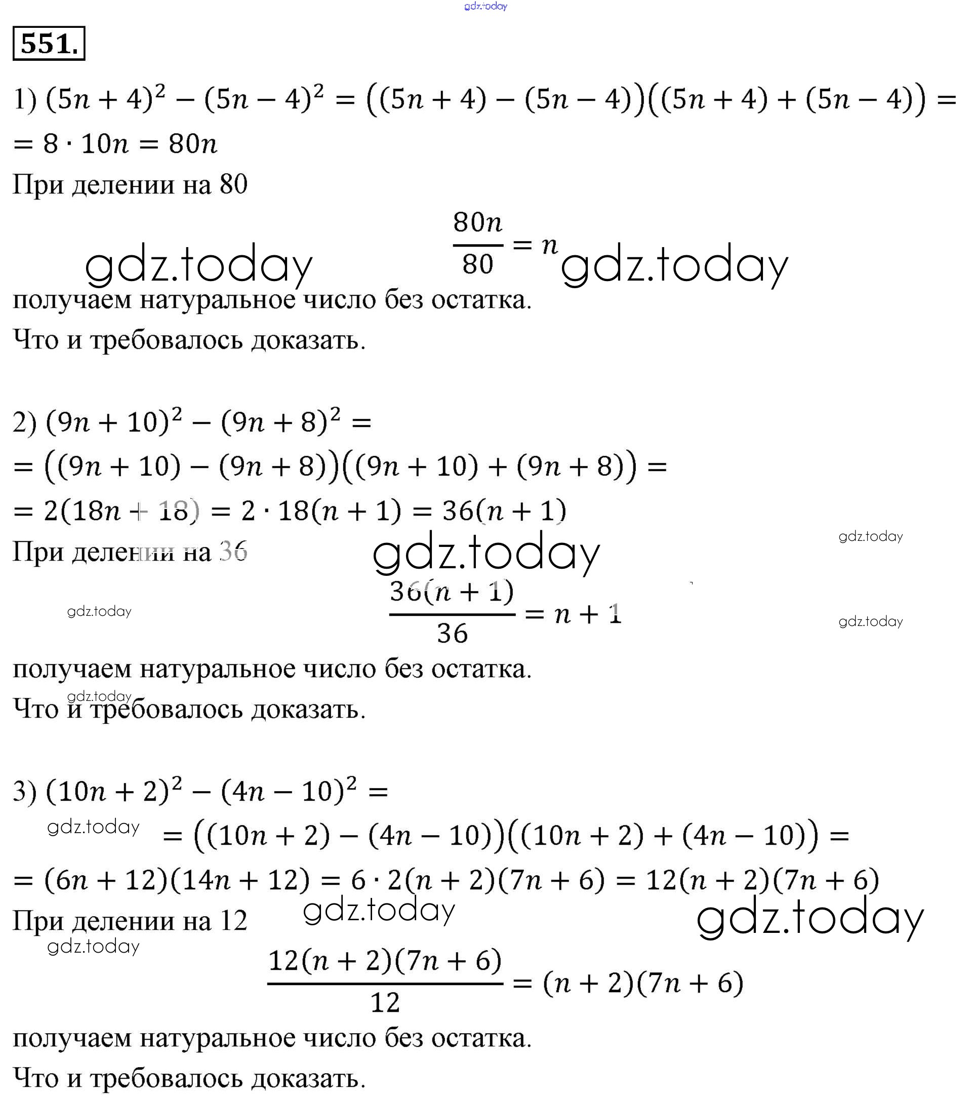 Ответы к Решение к упражнениям 551 Учебнику по Алгебре для 7 класса Мерзляк, Полонский Базовый уровень Вентана-граф Алгоритм успеха 2016