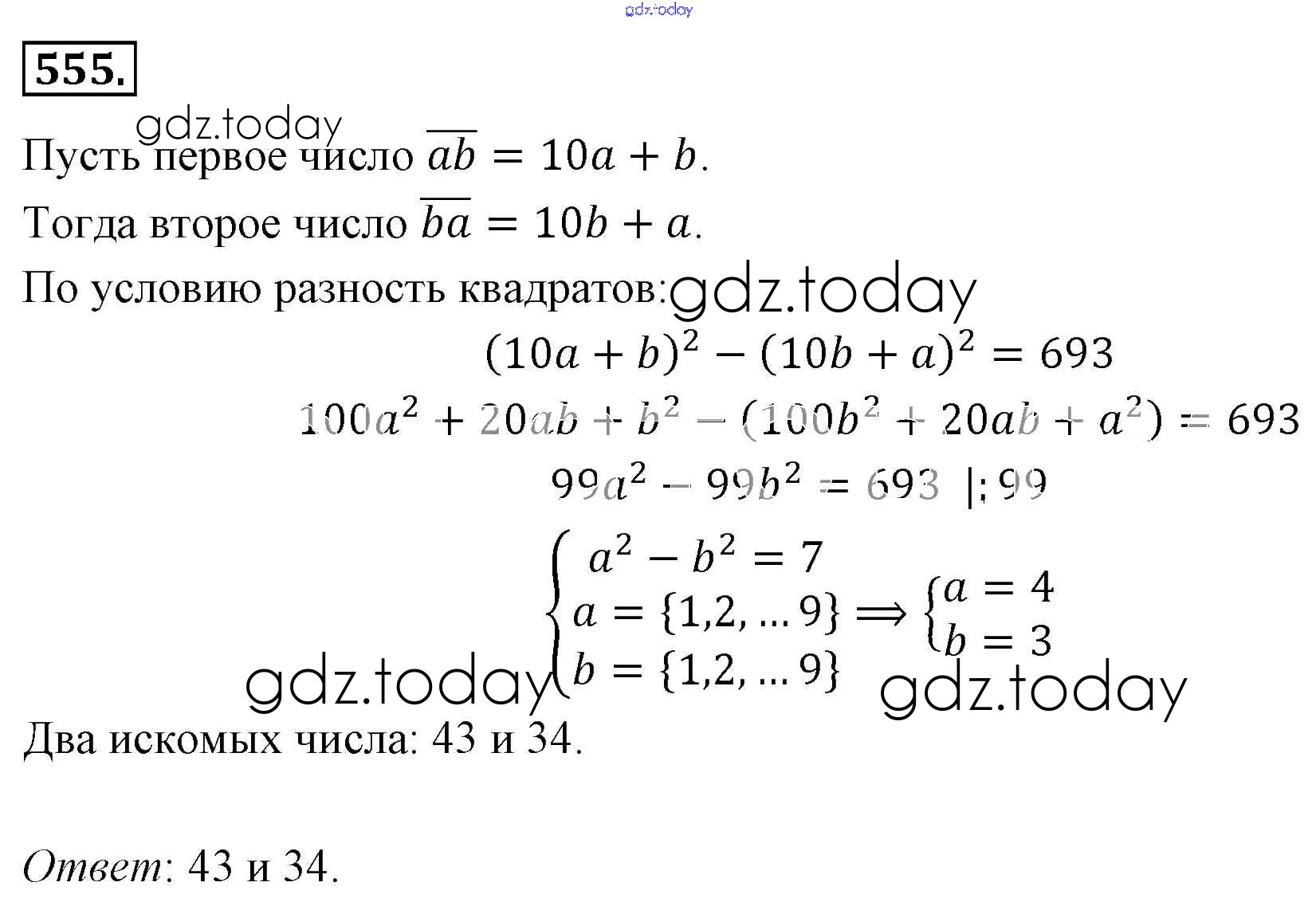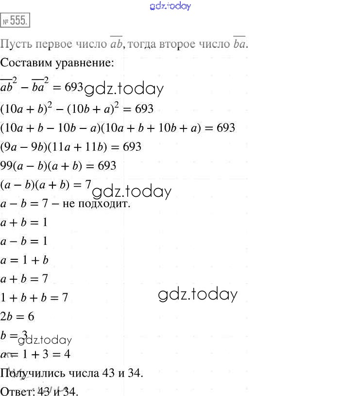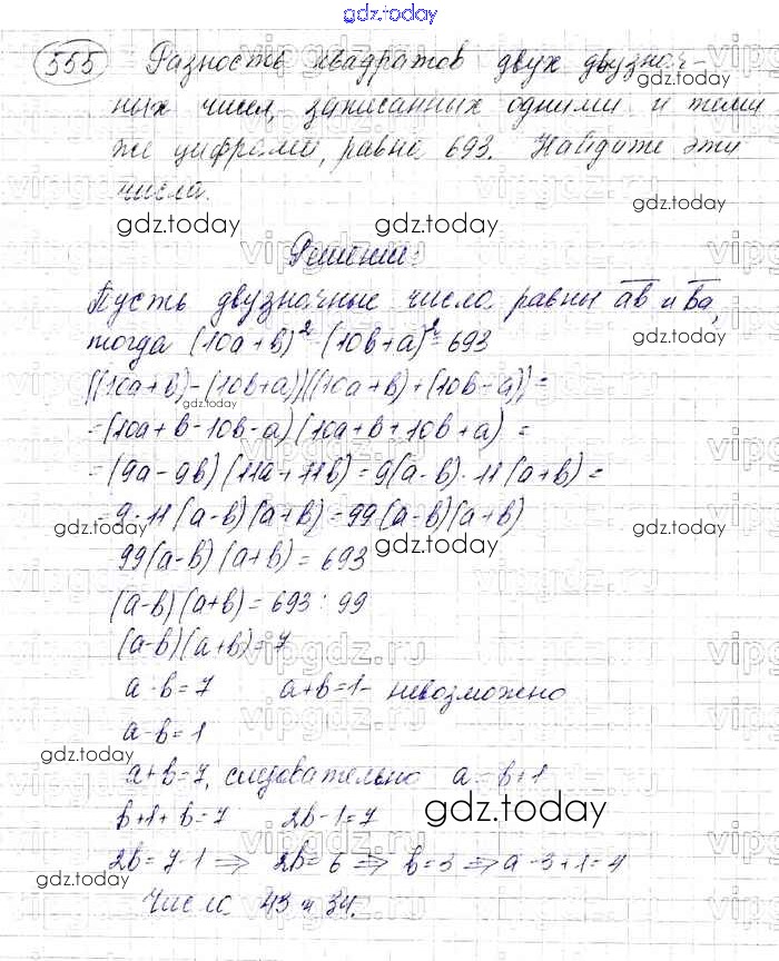 На страницах сайта gdz.today вы найдете учебный и вспомогательный материал, направленный на улучшения знаний школьной программы. ГДЗ - онлайн мир знаний Решение к упражнениям 555 Учебнику по Алгебре для 7 класса Мерзляк, Полонский Базовый уровень Вентана-граф Алгоритм успеха 2016