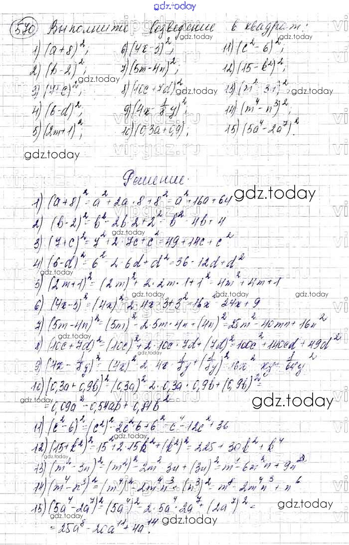 На страницах сайта gdz.today вы найдете учебный и вспомогательный материал, направленный на улучшения знаний школьной программы. ГДЗ - онлайн мир знаний Решение к упражнениям 570 Учебнику по Алгебре для 7 класса Мерзляк, Полонский Базовый уровень Вентана-граф Алгоритм успеха 2016