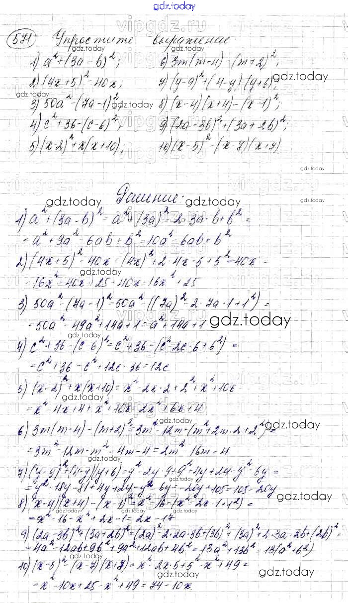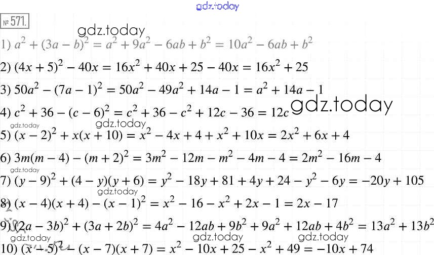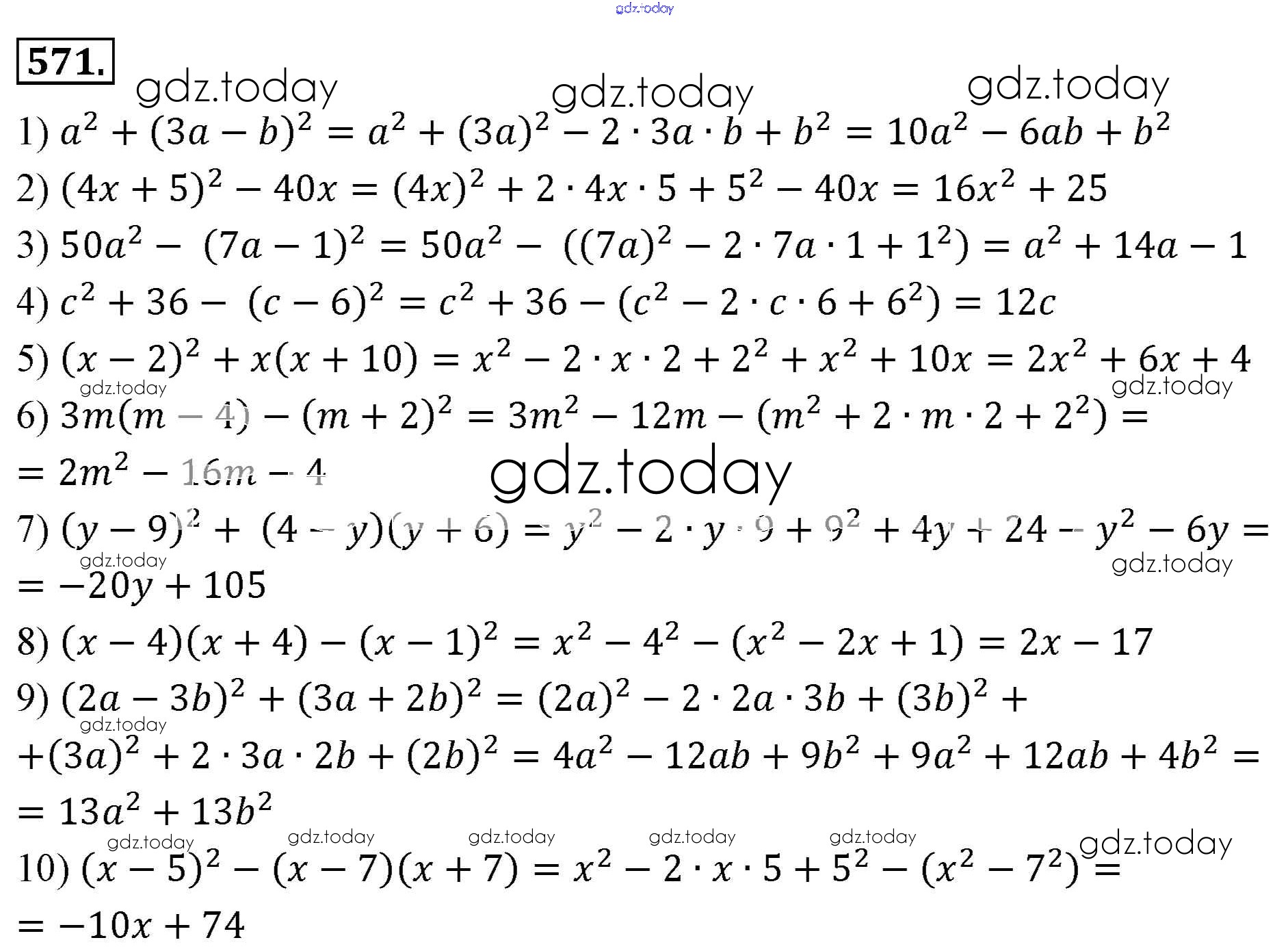 На страницах сайта gdz.today вы найдете учебный и вспомогательный материал, направленный на улучшения знаний школьной программы. ГДЗ - онлайн мир знаний Решение к упражнениям 571 Учебнику по Алгебре для 7 класса Мерзляк, Полонский Базовый уровень Вентана-граф Алгоритм успеха 2016
