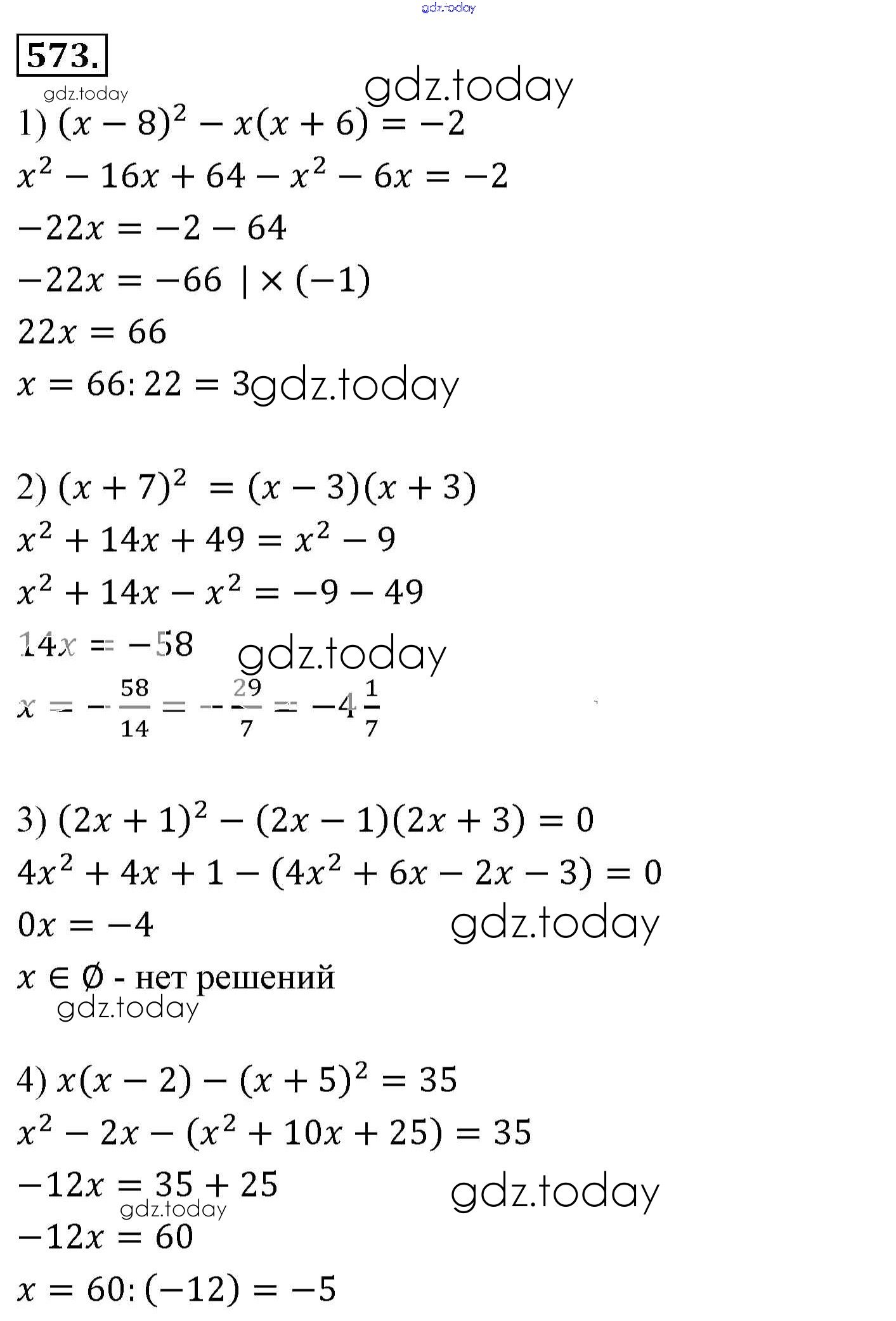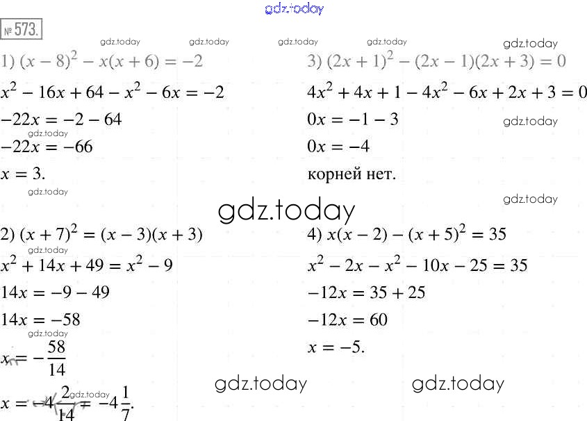 На страницах сайта gdz.today вы найдете учебный и вспомогательный материал, направленный на улучшения знаний школьной программы. ГДЗ - онлайн мир знаний Решение к упражнениям 573 Учебнику по Алгебре для 7 класса Мерзляк, Полонский Базовый уровень Вентана-граф Алгоритм успеха 2016