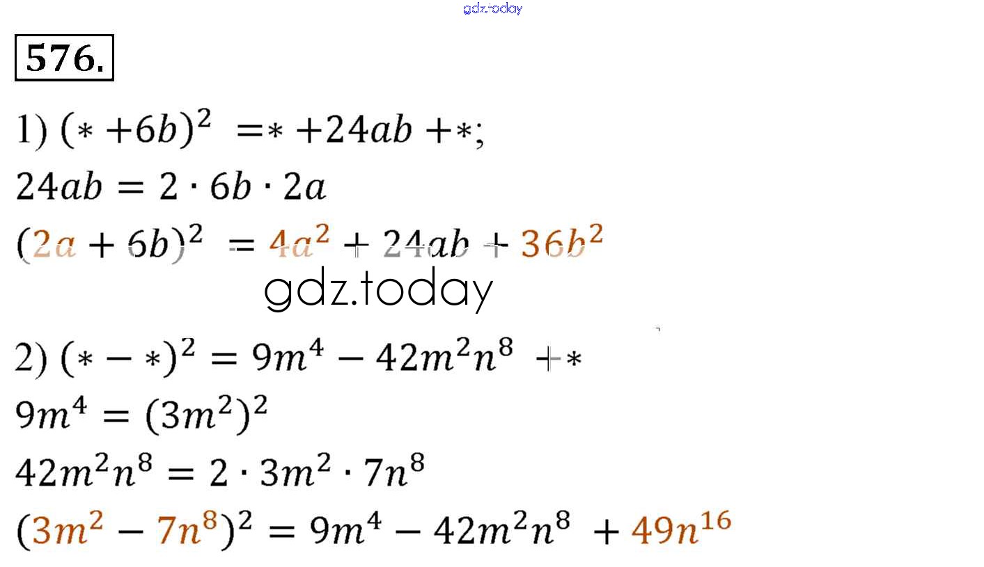 На страницах сайта gdz.today вы найдете учебный и вспомогательный материал, направленный на улучшения знаний школьной программы. ГДЗ - онлайн мир знаний Решение к упражнениям 576 Учебнику по Алгебре для 7 класса Мерзляк, Полонский Базовый уровень Вентана-граф Алгоритм успеха 2016