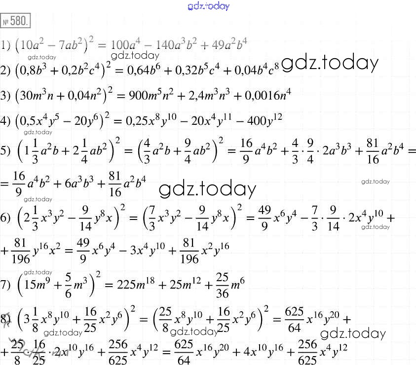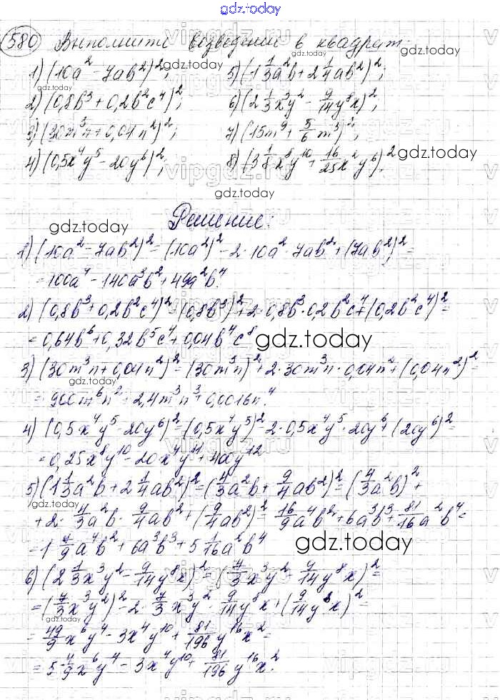 На страницах сайта gdz.today вы найдете учебный и вспомогательный материал, направленный на улучшения знаний школьной программы. ГДЗ - онлайн мир знаний Решение к упражнениям 580 Учебнику по Алгебре для 7 класса Мерзляк, Полонский Базовый уровень Вентана-граф Алгоритм успеха 2016