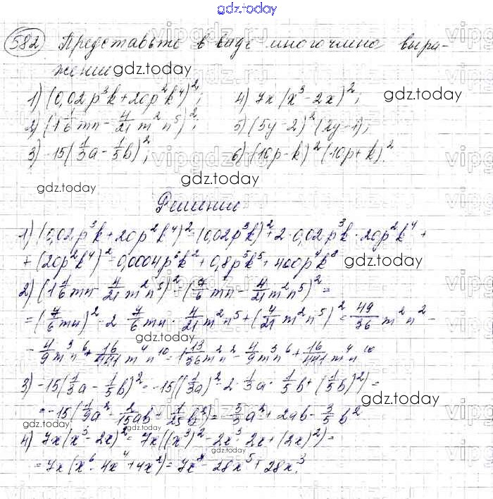 На страницах сайта gdz.today вы найдете учебный и вспомогательный материал, направленный на улучшения знаний школьной программы. ГДЗ - онлайн мир знаний Решение к упражнениям 582 Учебнику по Алгебре для 7 класса Мерзляк, Полонский Базовый уровень Вентана-граф Алгоритм успеха 2016