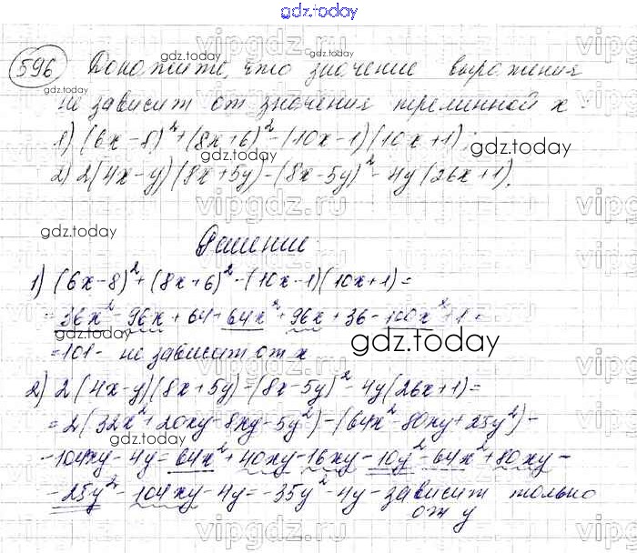 На страницах сайта gdz.today вы найдете учебный и вспомогательный материал, направленный на улучшения знаний школьной программы. ГДЗ - онлайн мир знаний Решение к упражнениям 596 Учебнику по Алгебре для 7 класса Мерзляк, Полонский Базовый уровень Вентана-граф Алгоритм успеха 2016