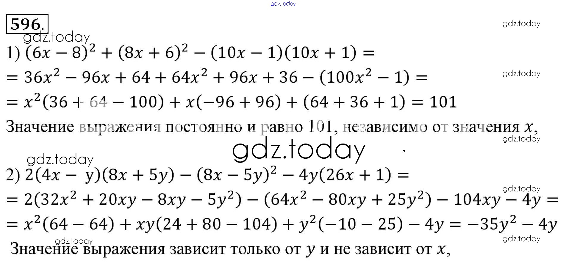 Ответы к Решение к упражнениям 596 Учебнику по Алгебре для 7 класса Мерзляк, Полонский Базовый уровень Вентана-граф Алгоритм успеха 2016