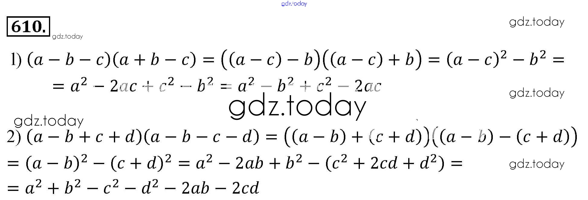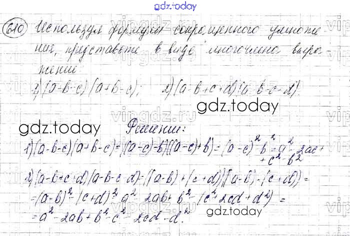 На страницах сайта gdz.today вы найдете учебный и вспомогательный материал, направленный на улучшения знаний школьной программы. ГДЗ - онлайн мир знаний Решение к упражнениям 610 Учебнику по Алгебре для 7 класса Мерзляк, Полонский Базовый уровень Вентана-граф Алгоритм успеха 2016