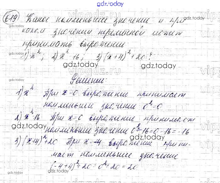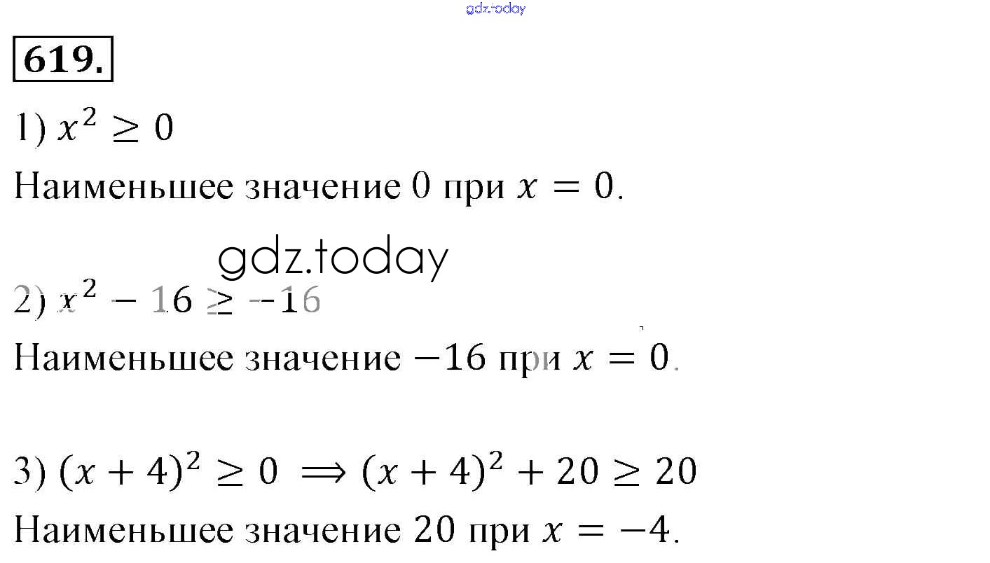 На страницах сайта gdz.today вы найдете учебный и вспомогательный материал, направленный на улучшения знаний школьной программы. ГДЗ - онлайн мир знаний Решение к упражнениям 619 Учебнику по Алгебре для 7 класса Мерзляк, Полонский Базовый уровень Вентана-граф Алгоритм успеха 2016