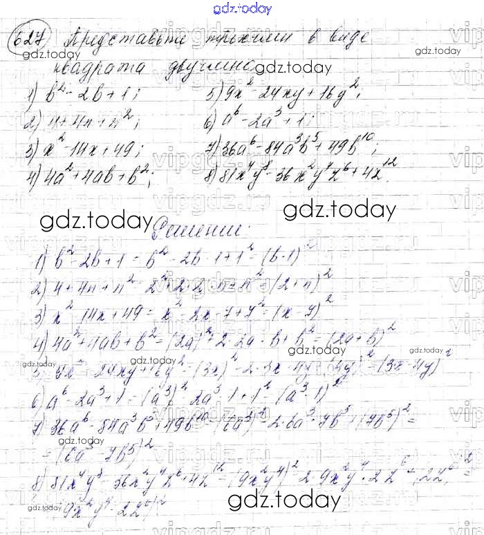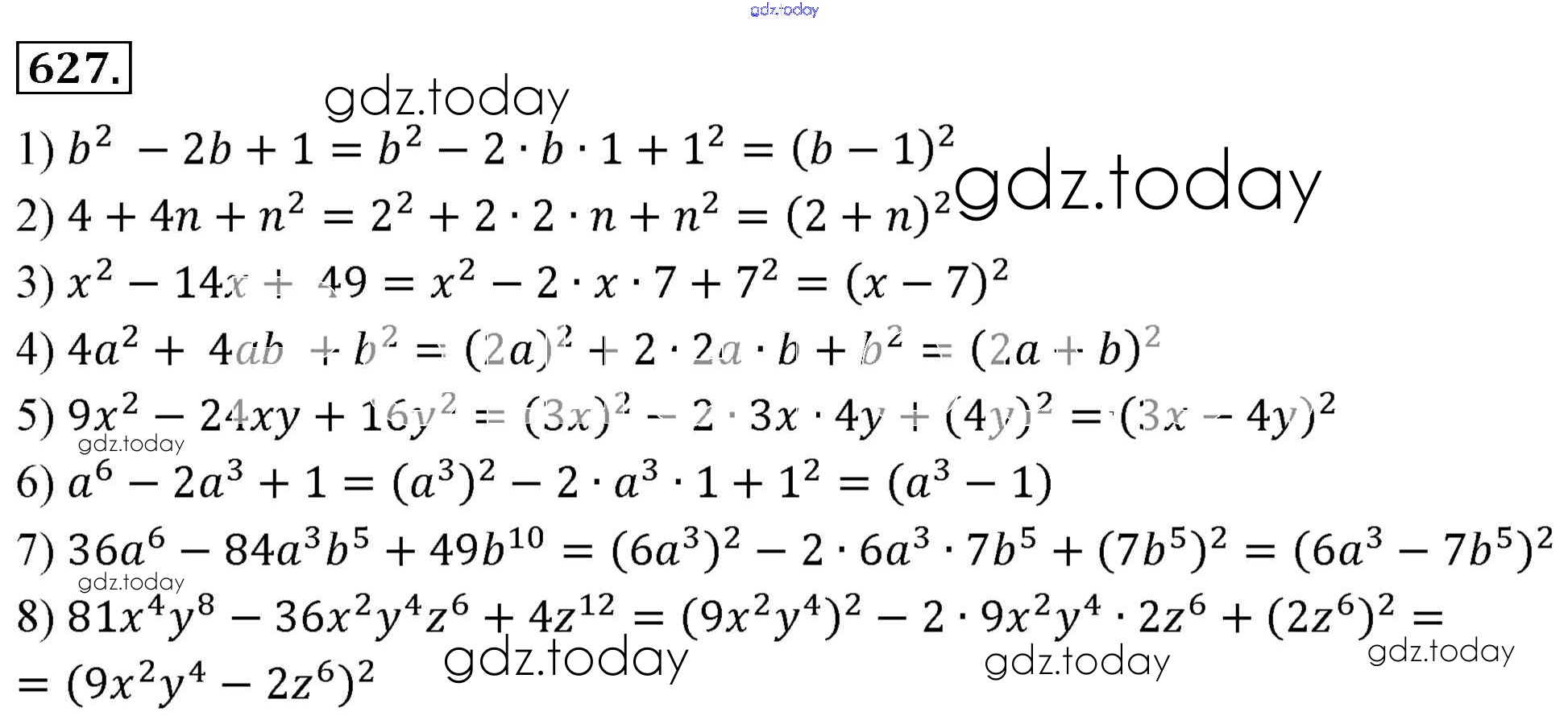 На страницах сайта gdz.today вы найдете учебный и вспомогательный материал, направленный на улучшения знаний школьной программы. ГДЗ - онлайн мир знаний Решение к упражнениям 627 Учебнику по Алгебре для 7 класса Мерзляк, Полонский Базовый уровень Вентана-граф Алгоритм успеха 2016