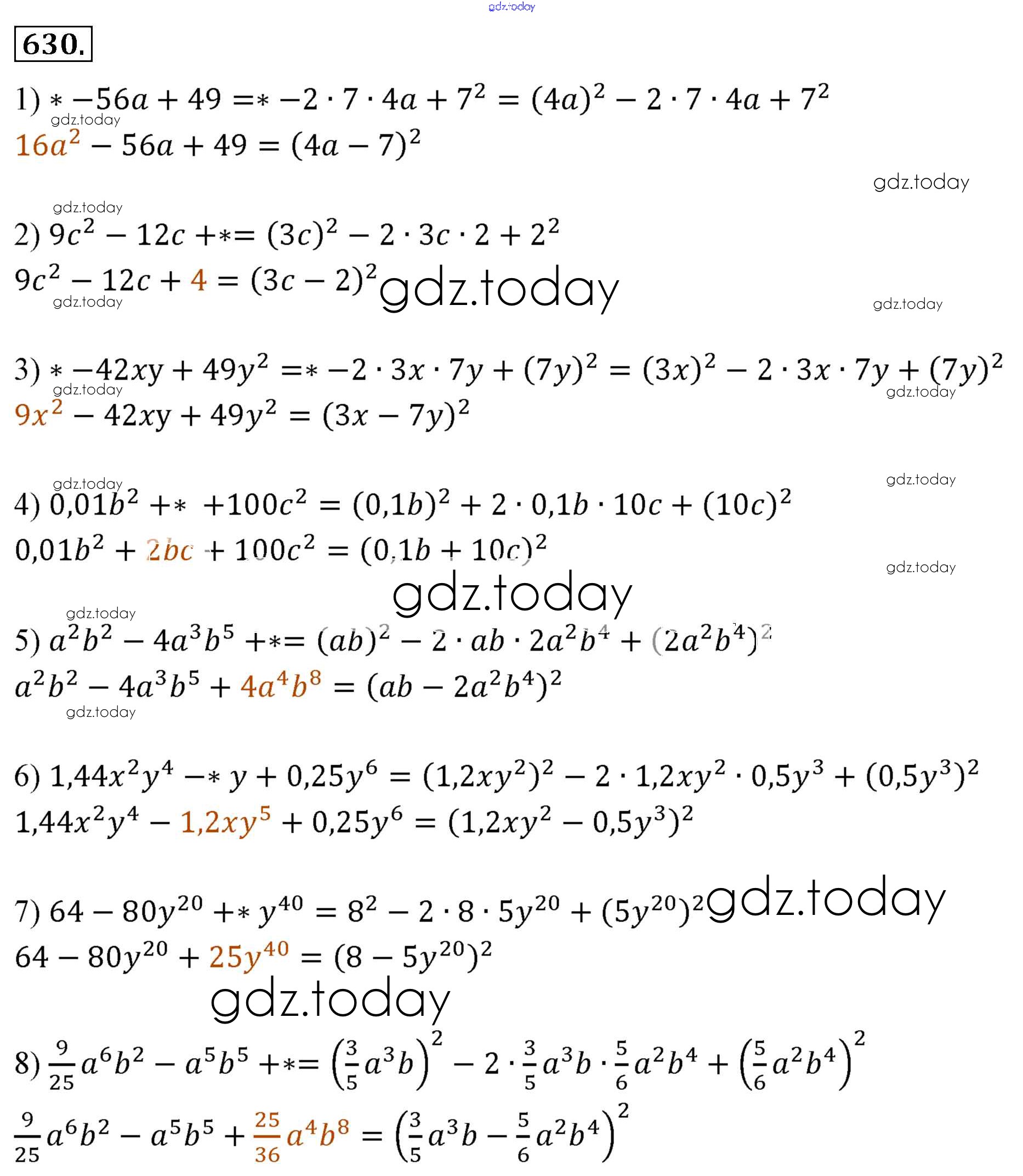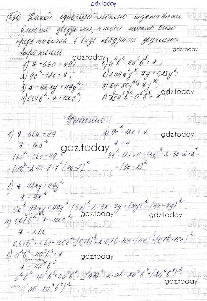 На страницах сайта gdz.today вы найдете учебный и вспомогательный материал, направленный на улучшения знаний школьной программы. ГДЗ - онлайн мир знаний Решение к упражнениям 630 Учебнику по Алгебре для 7 класса Мерзляк, Полонский Базовый уровень Вентана-граф Алгоритм успеха 2016