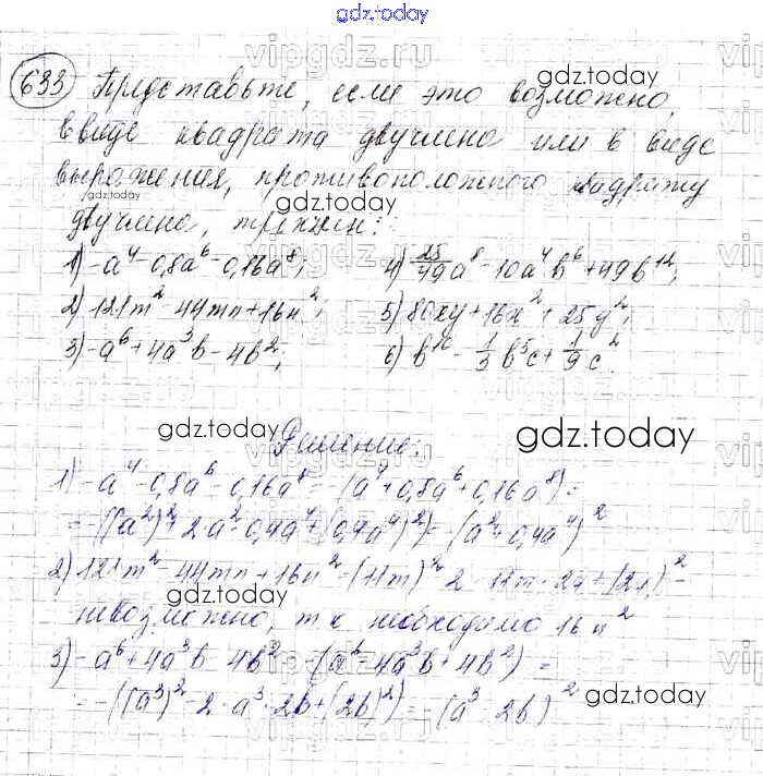 На страницах сайта gdz.today вы найдете учебный и вспомогательный материал, направленный на улучшения знаний школьной программы. ГДЗ - онлайн мир знаний Решение к упражнениям 633 Учебнику по Алгебре для 7 класса Мерзляк, Полонский Базовый уровень Вентана-граф Алгоритм успеха 2016
