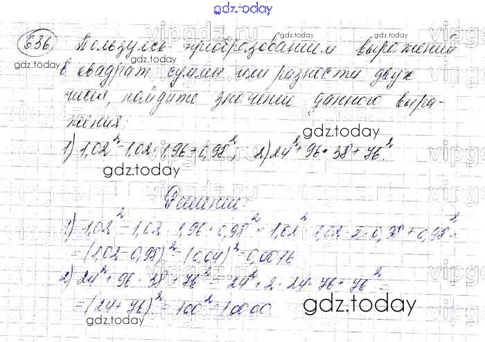 На страницах сайта gdz.today вы найдете учебный и вспомогательный материал, направленный на улучшения знаний школьной программы. ГДЗ - онлайн мир знаний Решение к упражнениям 636 Учебнику по Алгебре для 7 класса Мерзляк, Полонский Базовый уровень Вентана-граф Алгоритм успеха 2016