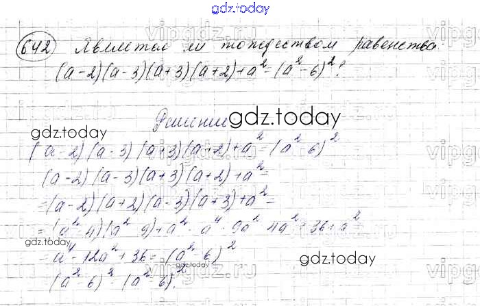 На страницах сайта gdz.today вы найдете учебный и вспомогательный материал, направленный на улучшения знаний школьной программы. ГДЗ - онлайн мир знаний Решение к упражнениям 642 Учебнику по Алгебре для 7 класса Мерзляк, Полонский Базовый уровень Вентана-граф Алгоритм успеха 2016