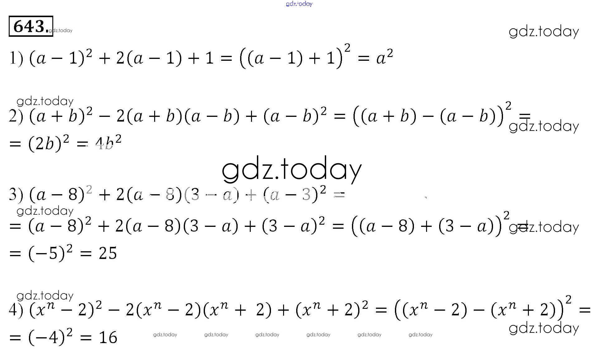 На страницах сайта gdz.today вы найдете учебный и вспомогательный материал, направленный на улучшения знаний школьной программы. ГДЗ - онлайн мир знаний Решение к упражнениям 643 Учебнику по Алгебре для 7 класса Мерзляк, Полонский Базовый уровень Вентана-граф Алгоритм успеха 2016