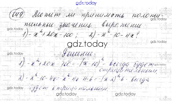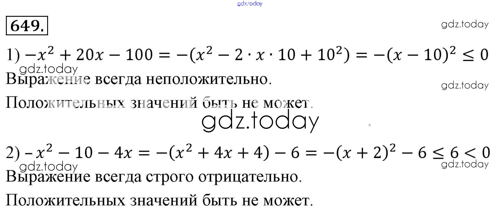 На страницах сайта gdz.today вы найдете учебный и вспомогательный материал, направленный на улучшения знаний школьной программы. ГДЗ - онлайн мир знаний Решение к упражнениям 649 Учебнику по Алгебре для 7 класса Мерзляк, Полонский Базовый уровень Вентана-граф Алгоритм успеха 2016