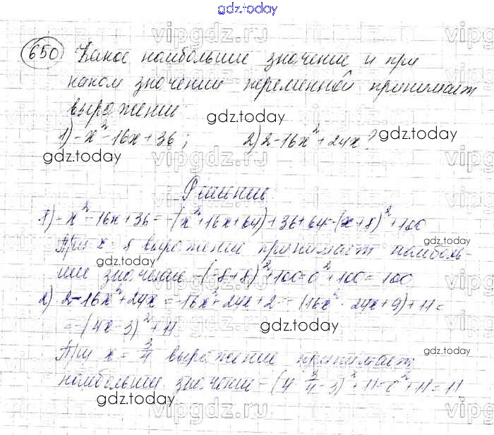 На страницах сайта gdz.today вы найдете учебный и вспомогательный материал, направленный на улучшения знаний школьной программы. ГДЗ - онлайн мир знаний Решение к упражнениям 650 Учебнику по Алгебре для 7 класса Мерзляк, Полонский Базовый уровень Вентана-граф Алгоритм успеха 2016