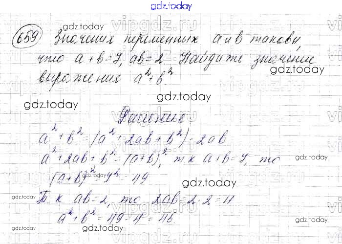 На страницах сайта gdz.today вы найдете учебный и вспомогательный материал, направленный на улучшения знаний школьной программы. ГДЗ - онлайн мир знаний Решение к упражнениям 659 Учебнику по Алгебре для 7 класса Мерзляк, Полонский Базовый уровень Вентана-граф Алгоритм успеха 2016